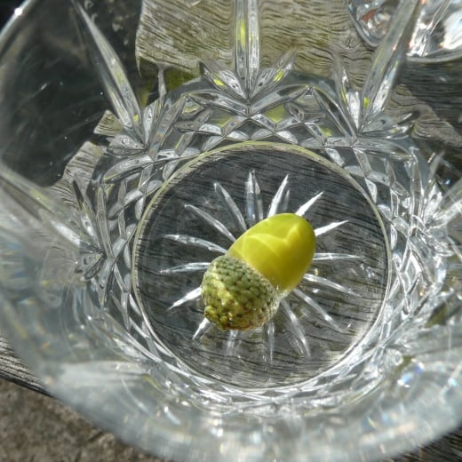 Acorns: Little children collect acorns as trophies with which they fill their pockets. They are solid Mandalas which, like marbles, are always comfortable to the touch. The little case is like an egg cup and the acorns sit in the cup like Humpty Dumpty waiting for a fall, or they can be turned around to create little ‘pixie’ caps.